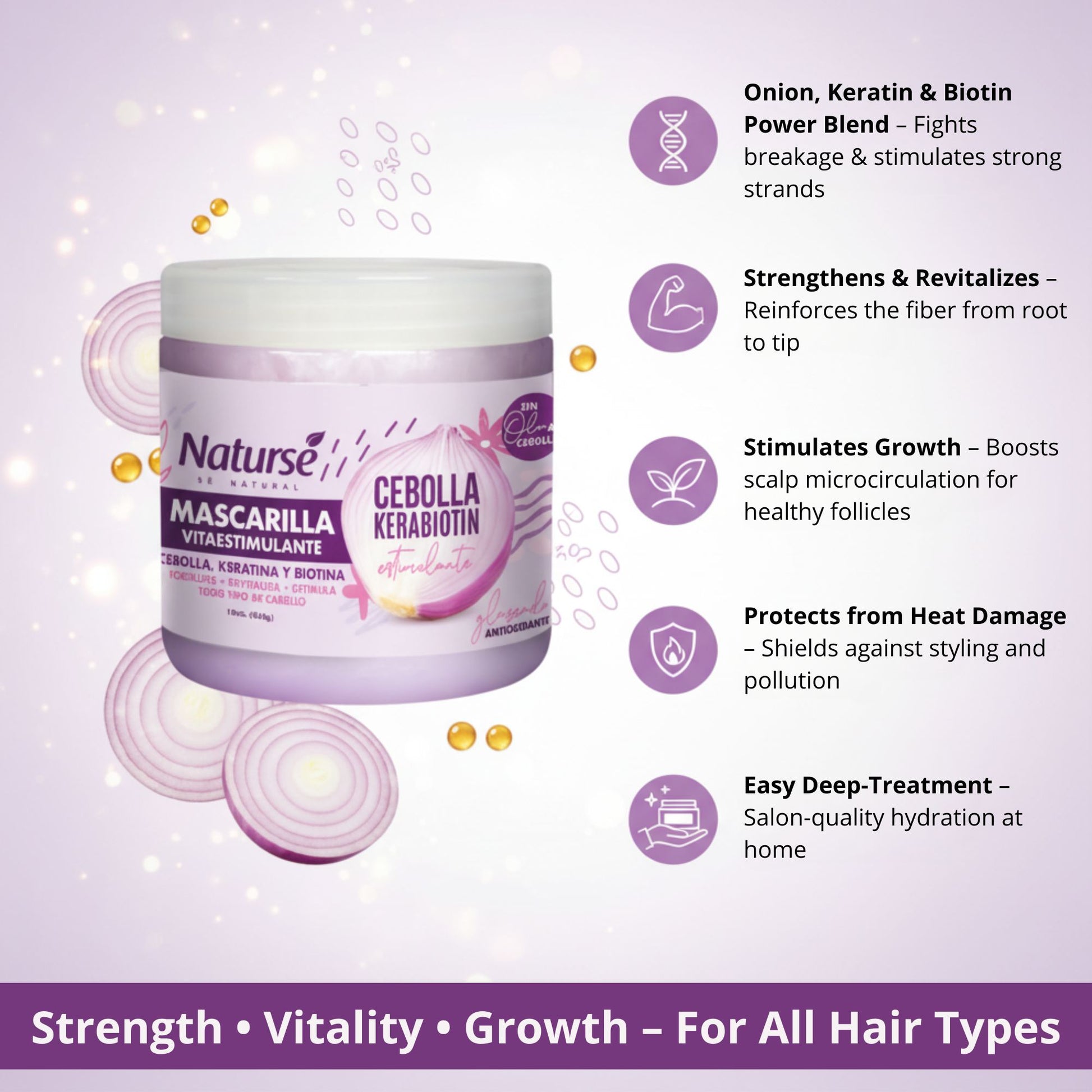 Naturse Vita-Stimulating Hair Mask 16 oz - Onion, Keratin & Biotin Treatment