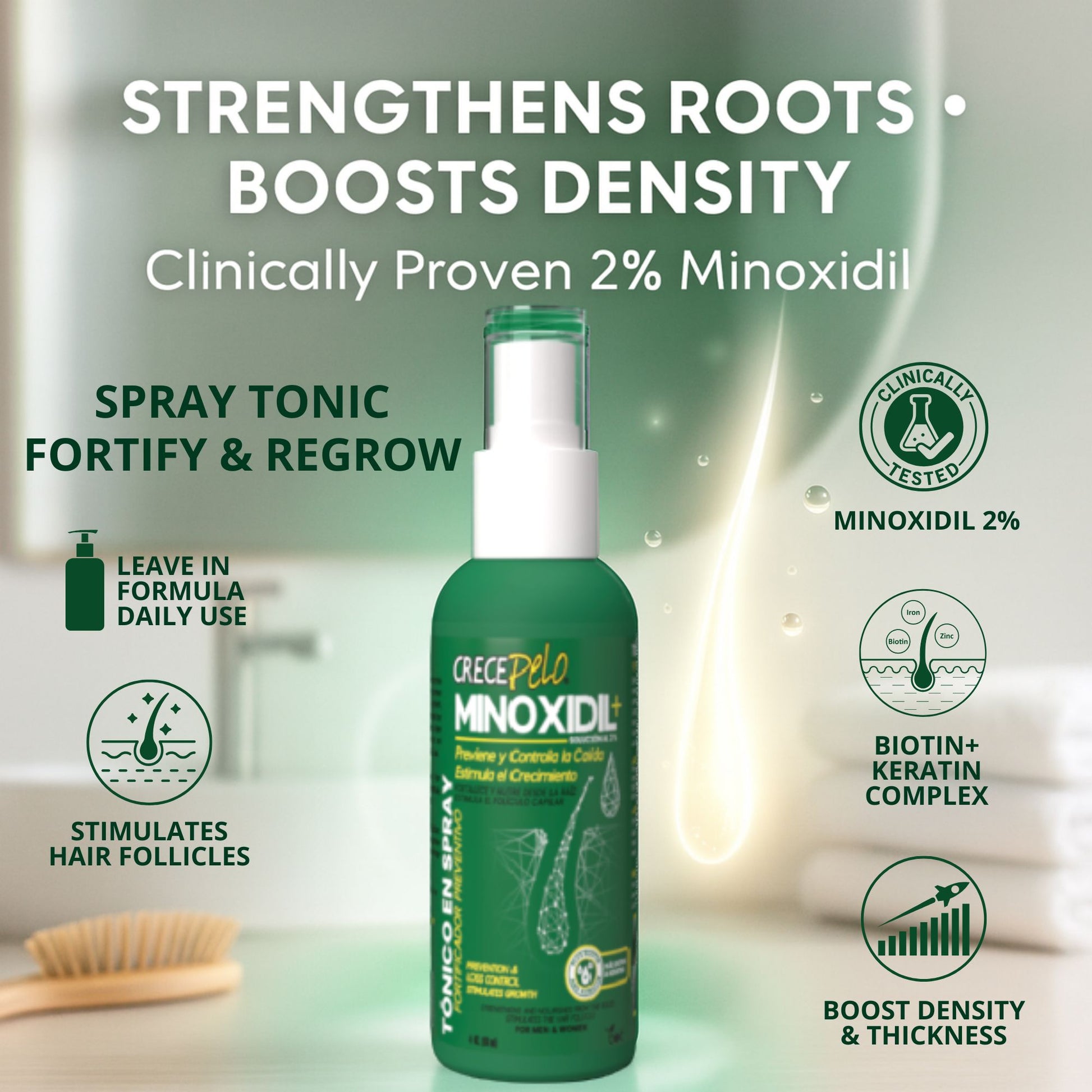 CrecePelo Minoxidil 2% Hair Spray Tonic 4 oz - Anti-hair loss Treatment